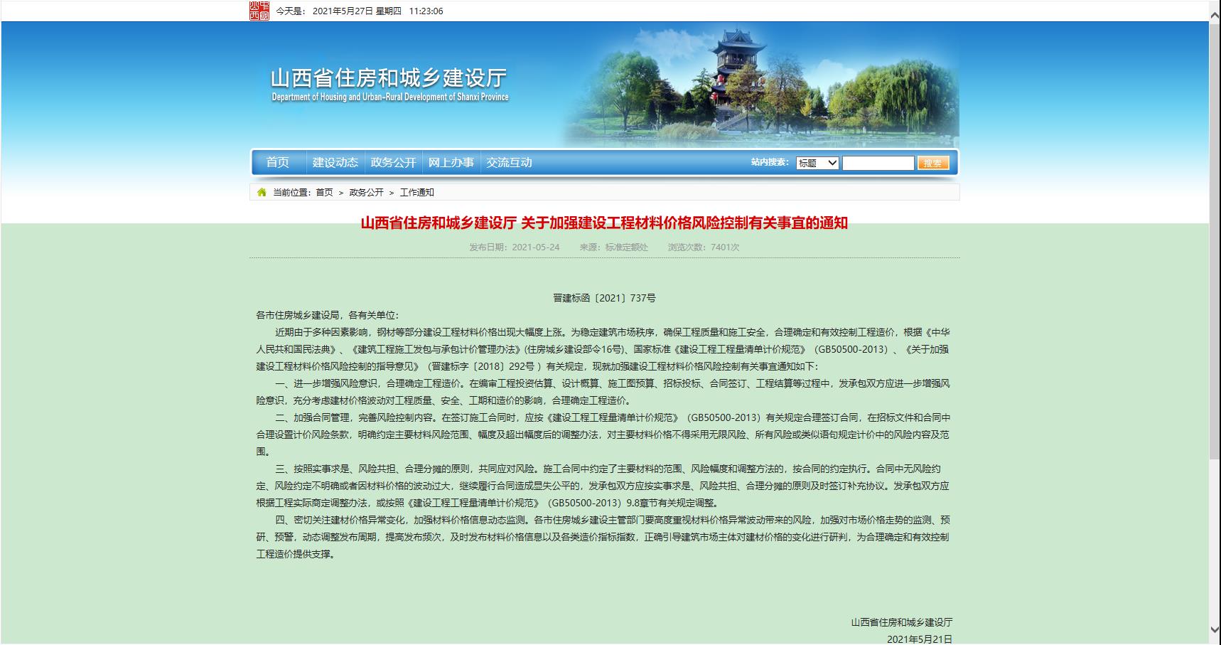 山西省住房和城鄉(xiāng)建設(shè)廳 關(guān)于加強建設(shè)工程材料價格風險控制有關(guān)事宜的通知